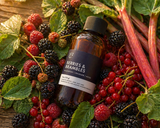 Tart blackberry, pink currant, and sun-blushed rhubarb weave with tangy blueberry and juicy lingonberry nestled winding through soft woodland moss and hedgerow greens.